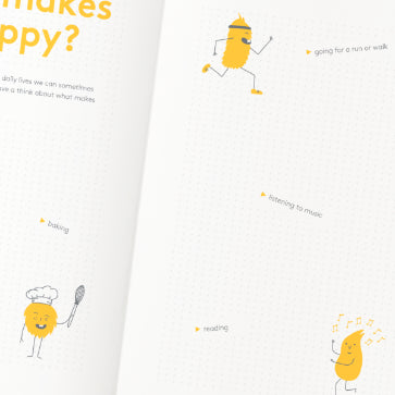 Available in yellow and limited-edition colours. Translated into Dutch, French, German, Italian, Portuguese, Polish, Spanish and Swedish available from eu.happyselfjournal.com for EU shipping. US English also available over at happymejournal.com and exclusively shipping in the USA.