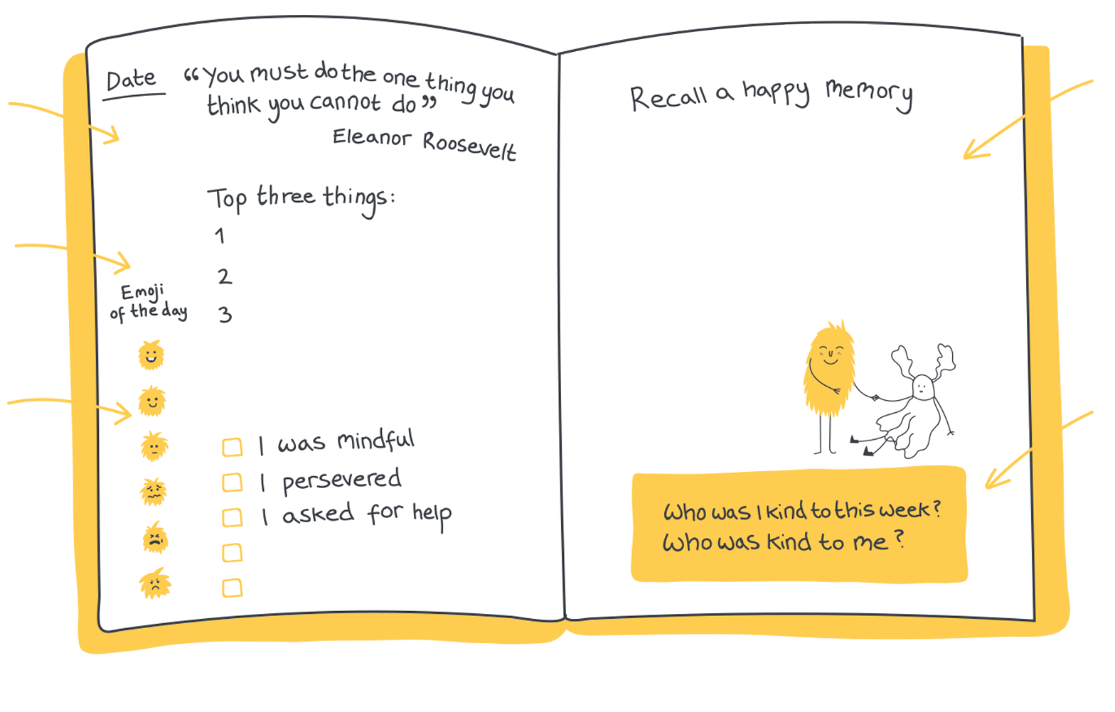We highly recommend you fill out the journal with your child, even acting as scribe if your child is tired or dislikes writing, so that the emphasis can be on the conversation and reflection rather than the act of writing.